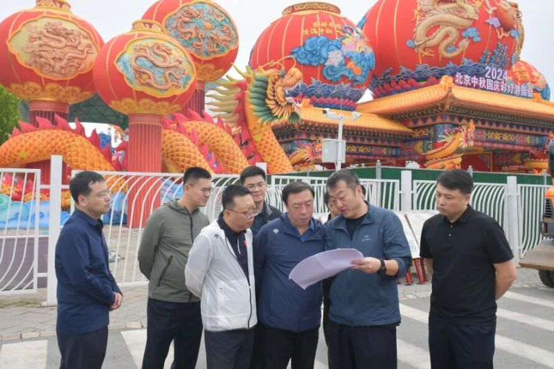 ▲董亦军(右三)在2024中秋国庆彩灯会举办前夕,前往游园会现场对人员、车辆路线进行调研。
