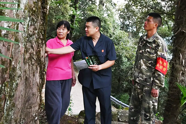 接到护林员反馈后,建瓯法院立刻启动联动机制,巡山队法官随队前往现场,不仅向茶农出示《古树名木保护条例》相关条款,还结合周边古树因根系受损死亡的案例,详细讲解古树生态价值。最终,茶农主动恢复古树周边植被,并签订《古树保护承诺书》。这起纠纷的高效解决,让“法官+护林员”的协作模式从“尝试”迈向“常态”。