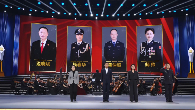 4位“致敬英雄”人物是:边晓斌,生前系江苏省仪征市人民法院党组副书记、常务副院长;蒋仲超,生前系湖北省武汉市公安局江夏区分局交通管理大队二中队二级警长;杨春华,生前系宁夏回族自治区银川市公安局监所管理支队三级高级警长;师帅,生前系黑龙江省强制隔离戒毒所四级高级警长。图片