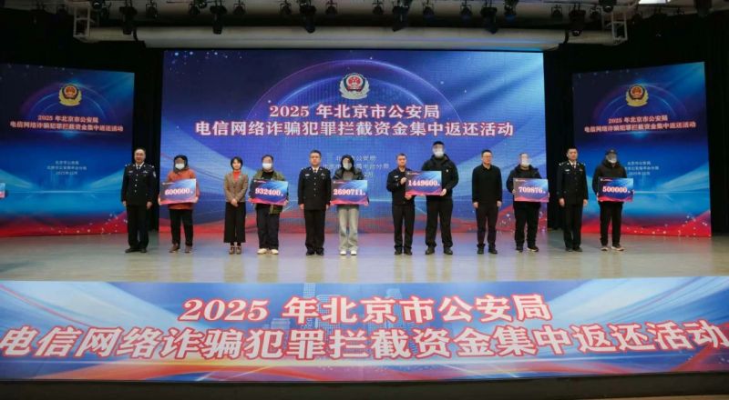 “真没想到,被骗的钱还能追回来!”12月9日,北京市公安局举行2025年电信网络诈骗犯罪拦截资金集中返还活动,30名市民拿回了3000余万元被骗资金。据统计,今年以来,北京警方累计向被骗群众返还涉诈资金8亿余元。