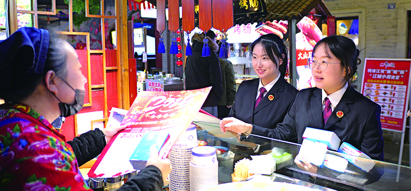 “法官,我是市场里的商户,最近遇到有人在我摊位前闹事,说我‘占了公共区域’,还威胁要砸我的东西,算不算侵犯我的合法权益?宪法里有没有相关规定?”经营蔬菜摊的王大姐焦急地问道。林盛法庭法官龚会当即回应:“王大姐,您的合法经营权和财产权受宪法保护!宪法第十三条明确规定‘公民的合法的私有财产不受侵犯’,第五十一条也要求公民在行使自由和权利的时候,不得损害国家的、社会的、集体的利益和其他公民的合法的自由和权利。如果对方的行为干扰了您的正常经营,您可以通过报警或向法院起诉的方式维护自己的权益,这正是宪法赋予您的权利。”一番解答让王大姐豁然开朗,连连点头。