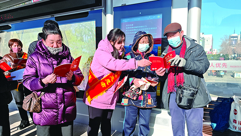 “天儿这么冷,等车还能学宪法、问难题,这服务比揣个暖手宝还贴心!”12月2日清晨,盘锦市人大公交站的电子站牌前,刚咨询完物业纠纷问题的市民王女士攥着崭新的《中华人民共和国宪法》读本,对着普法志愿者连声道谢。