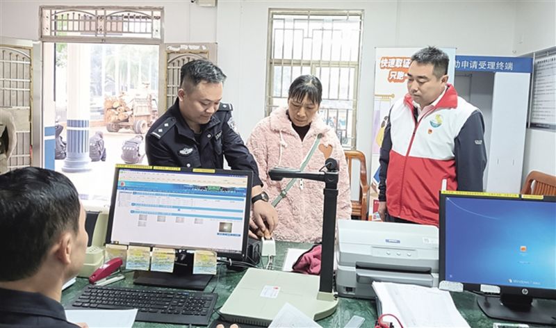12月4日,白沙七坊派出所副所长曾志佳帮助刘女士录入指纹办理户籍手续。记者宋飞杰 摄