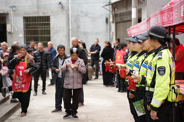 在资源整合方面,该局打破警种壁垒与部门界限,组建由交警、刑侦、治安、出入境、网安等多部门13名业务骨干组成的“萤火虫宣讲团”,形成专业互补、协同作战的工作格局。同时,积极联动交通、教育、宣传、文旅、卫健等单位,整合卫生院、农技站、信用社等资源,将交通安全宣传与健康体检、农技咨询、金融反诈等服务有机结合,实现“一次活动、多重服务”。