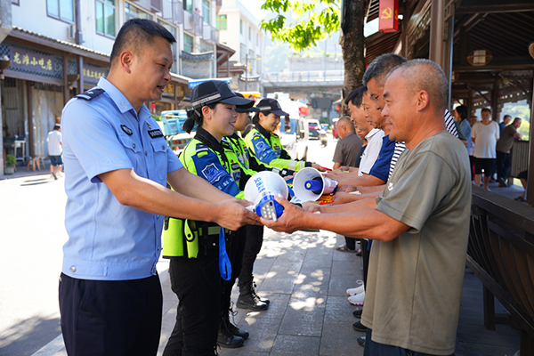 聚焦生产生活需求,该局针对武曲镇茶农、果农多的特点,定制“山路崎岖果实甜,谨慎驾驶家才圆”等专属交通安全提示牌,在茶园、果园埂边设置醒目警示;在竹管垅乡,组建“背包警务服务队”,深入茶山、稻田与村民家中普及交通安全法规,开展便民服务;在托溪乡,开设“安全‘乡’遇小卖铺”,群众通过体验“鬼探头模型”“盲区展示板”等道具学习交通安全知识,在边玩边学中增强安全意识。