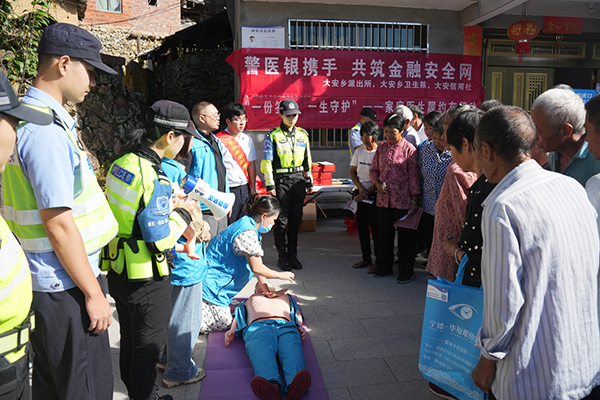 在“萤火虫计划”大安站,寿宁县公安局联合大安卫生院、大安信用社开展安全反诈宣传和健康体检服务