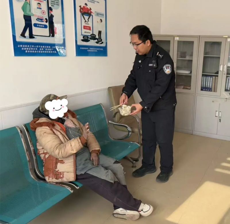 考虑到天气寒冷,民警将老人带回派出所,并为她准备了一碗热腾腾的水饺,一边安抚老人情绪,一边尝试多种方式沟通。在耐心引导下,老人用颤抖的手写下“莫某某”“广西”等字样。