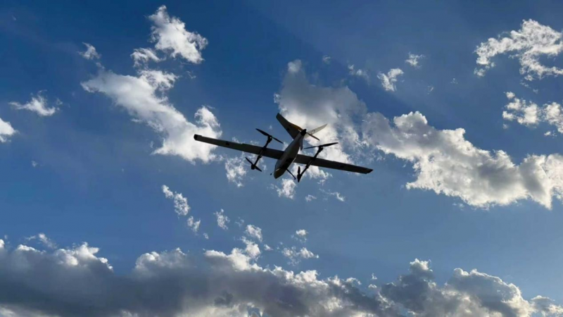 “鹰巡”无人机空中巡边作业。(来源:锡林郭勒盟融媒体中心)
