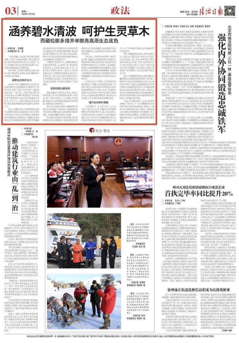 记者在采访中了解到,在自然保护地体系建设中,西藏自治区检察院创新工作举措,制定《全区国家级自然保护区公益诉讼检察联络室设立方案》,在11个国家级自然保护区涉及的35个林草局(保护区管理局)设立公益诉讼检察联络室,强化执法司法衔接,让生态保护监督更加精准高效。