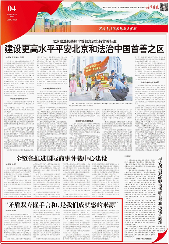 每周五上午是“基层政法日”,公安、检察、法院、司法局的力量以及专业律师下沉到街道,与综治中心集中办公会商,针对疑难复杂类纠纷共同研究解决路径。“基层政法日”不仅设在综治中心,还直接在社区现场办公,直面群众诉求,给出解决办法。
