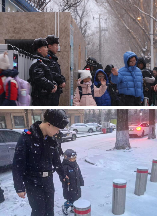 为应对大雪天气,香坊分局针对性优化“护学岗”勤务,组织执勤民警提前到岗,在清晨、傍晚重点时段坚守校园周边,疏导车辆、护送学生过马路,联动学校筑牢平安防线,保障学生上下学安全。