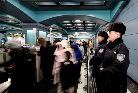 公交分局在博物馆站、中央大街站、冰雪大世界站等重点车站,采取前置警力、增派安保力量等措施,强化现场秩序维护。科学运用硬隔离管控模式,在换乘通道、闸机群、出入口等关键节点,构建“之”字形或单向循环通行路径,有效分散客流压力。同时,针对游客携带行李多、不熟悉流程等特点,优化安检程序,设置咨询服务岗,在确保安全的前提下提升通行效率,全力保障地铁运营安全顺畅。