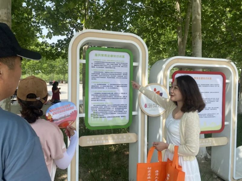 为推动法治宣传教育阵地实体化、场景化与全域化,津南区坚持因地制宜、分类施策,将法治元素融入公园、广场、社区等公共空间,打造群众家门口的普法平台。