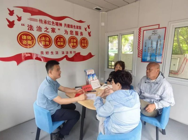 “我们将原有的闲置移动板房改造成‘法治小屋’,在特定的时间节点开展普法宣传活动,同时在每周一、二、三上午和周四下午安排工作人员值班,解答群众的法律咨询。”双新司法所所长张卫介绍说。