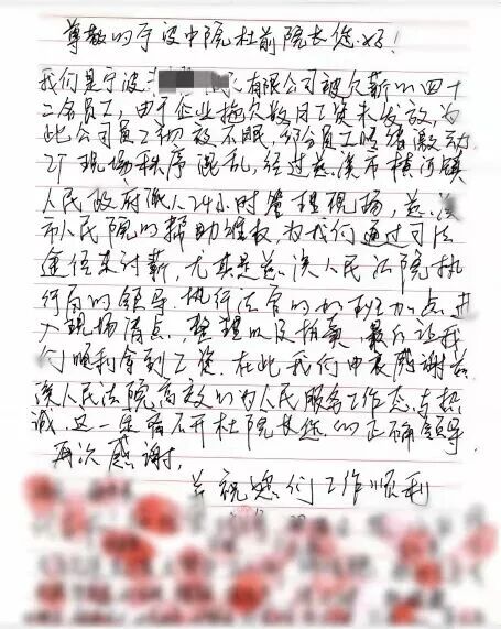近日,浙江省宁波市中级人民法院收到了一封特殊的感谢信——上面密密麻麻签着42个名字。