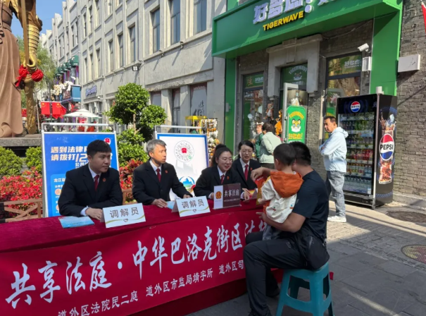 “就地解纷”的生动实践,在全市多个旅游热点区域延伸推广。道外区人民法院深耕“法润老道外”司法服务品牌,在人流如织的中华巴洛克历史文化街区挂牌成立了“共享法庭-中华巴洛克街区法律服务站”,并联合区市场监督管理局、司法局组建“流动调解小组”,随时处置街区内的突发纠纷。