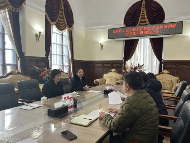 道里区人民法院与区文旅局召开涉旅纠纷调解对接工作机制推进会,联合成立“涉旅纠纷调解室”,针对涉旅纠纷开展调解工作。