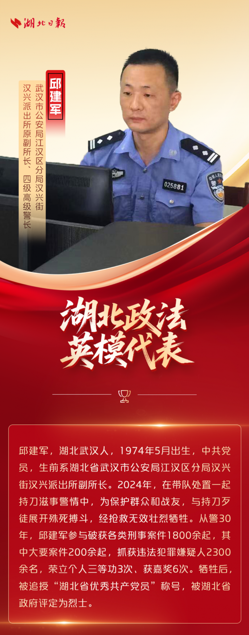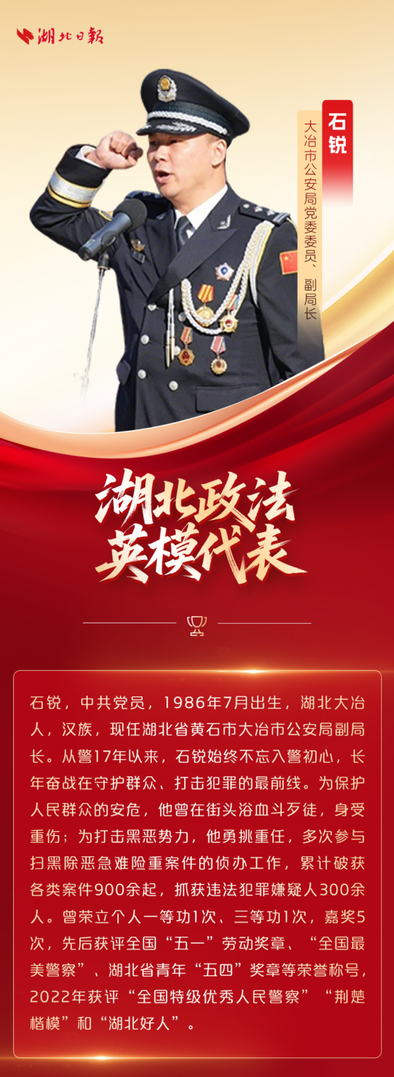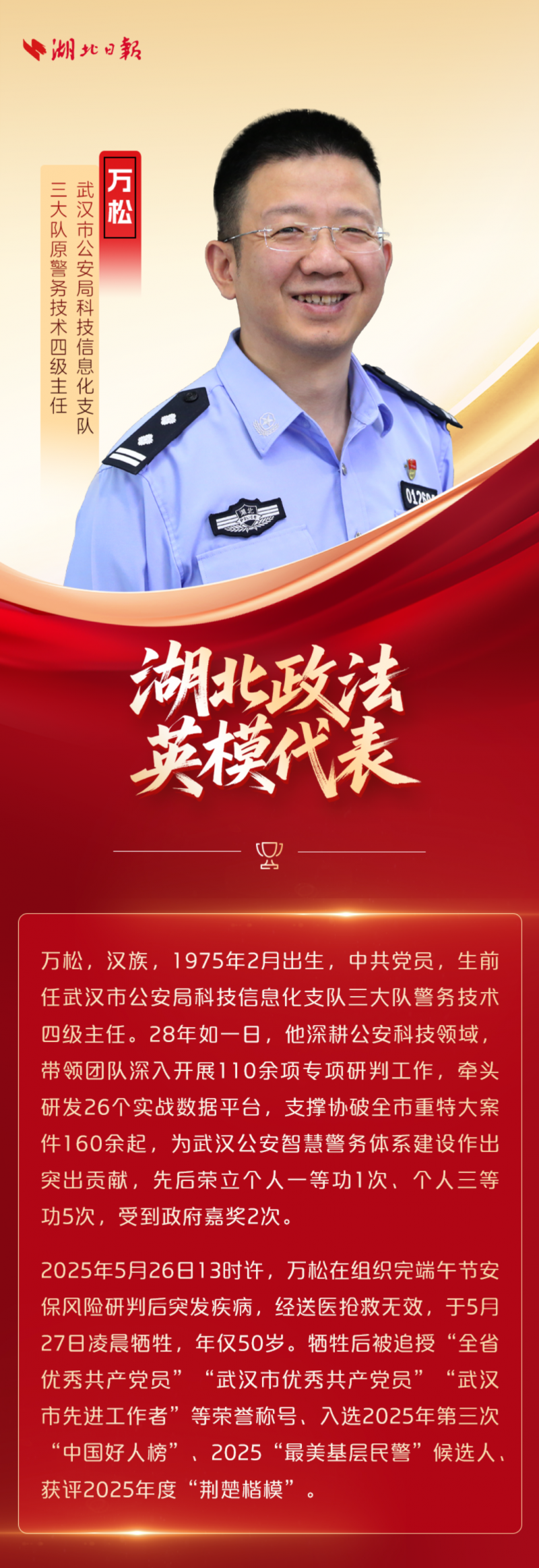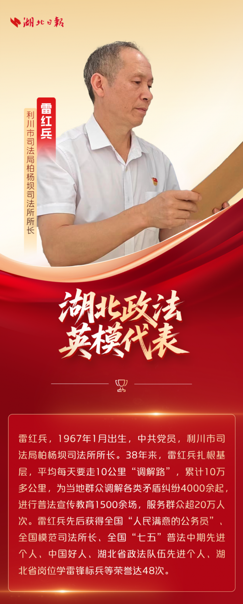 忠诚耀荆楚!今天,一起致敬他们 2026-01-01 21:02 湖北长安网 字号: 12月30日 一场主题为“忠诚的力量”的 湖北省政法英模先进事迹报告会在汉举行 什么是忠诚? 十位英模给出了铿锵有力的回答 “十四五”期间在省委坚强领导下 湖北省政法队伍建设不断加强 12万名政法干警用热血诠释初心 1895个集体和个人获省部级表彰 平安建设主力军作用进一步彰显 荆楚大地平安稳定良好态势持续巩固 面向“十五五” 湖北省政法机关将强化政治引领 进一步锻造忠诚干净担当的 新时代政法铁军 为确保支点建设取得决定性进展 提供有力保障 责任编辑:CmsTop 打印