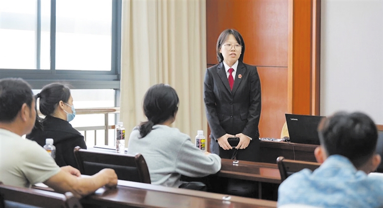 秀英法院少年法庭庭长冯南茜与家长们进行讨论交流。(秀英法院供图)