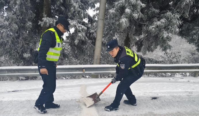 2026年1月1日,元旦佳节清晨,平均海拔1600米的恩施市板桥镇大山顶村气温低至零下,鹅毛大雪仍在持续。板桥派出所副所长张金星和同事牟卫明冒着刺骨寒风,在恩川线路段为过往驾驶员安装防滑链、叮嘱安全事项,口中呼出的白气在低温中瞬间凝结。这是暴雪突袭后,他们坚守岗位的第二天。