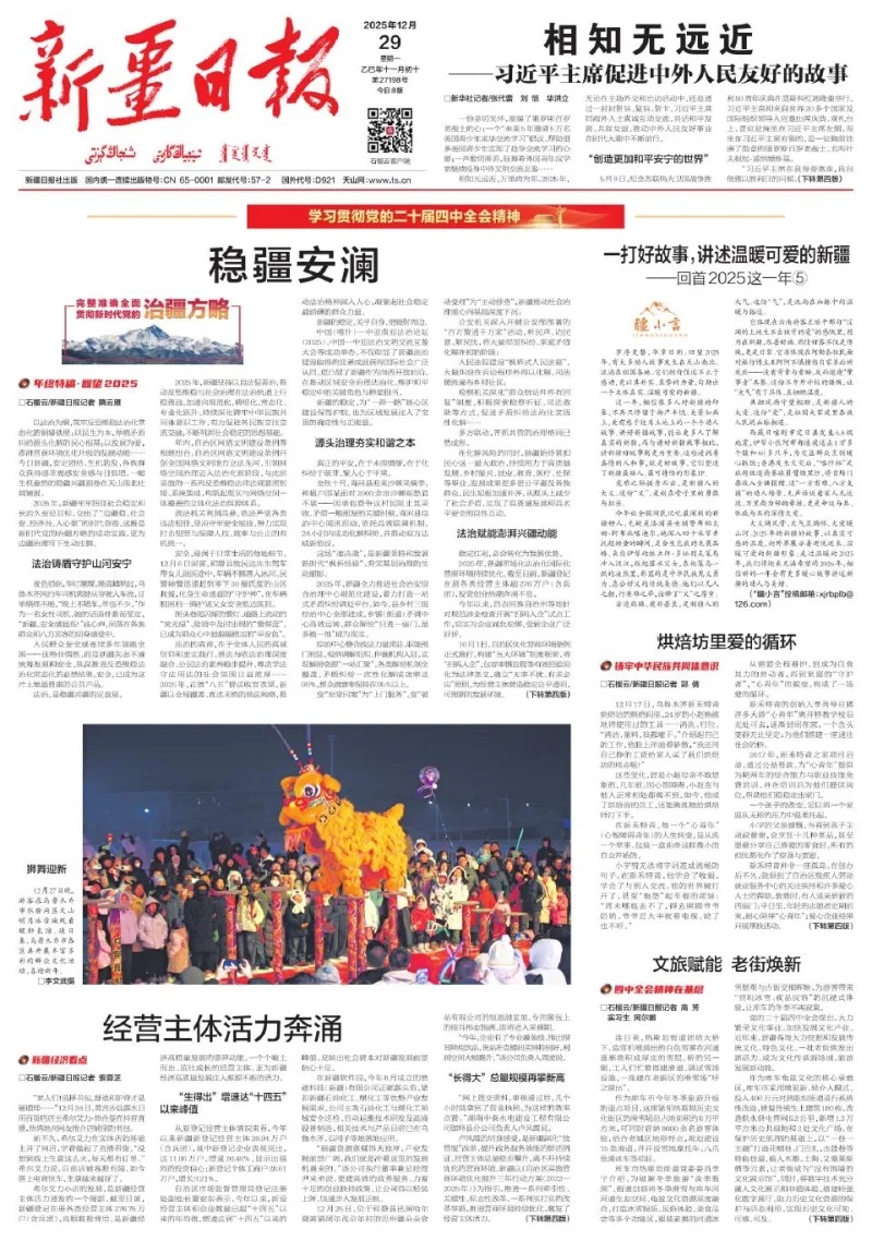 新疆日报12月29日【A01版●要闻】