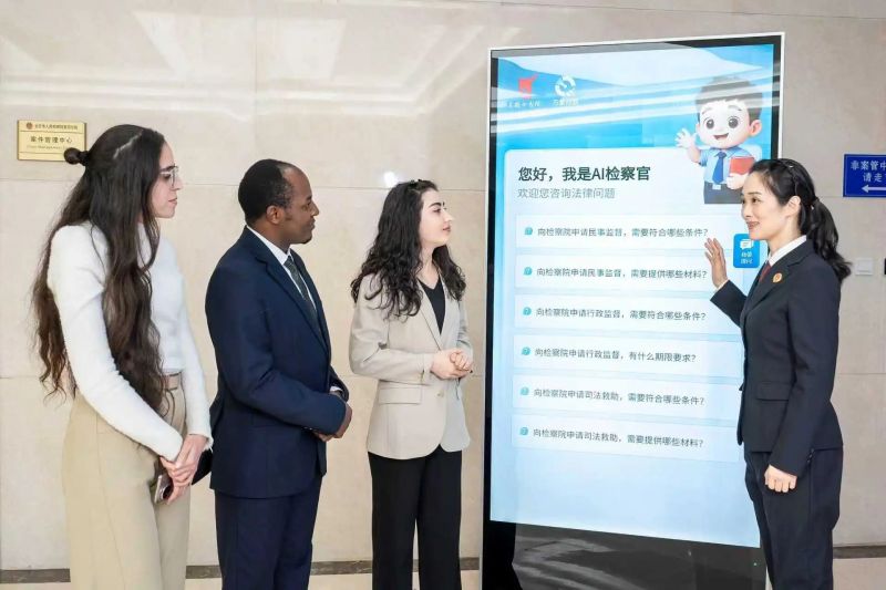 2025年12月23日,北京市检察院第四分院AI检察官用阿拉伯语向对外经贸大学3名摩洛哥留学生介绍民事法律监督程序。