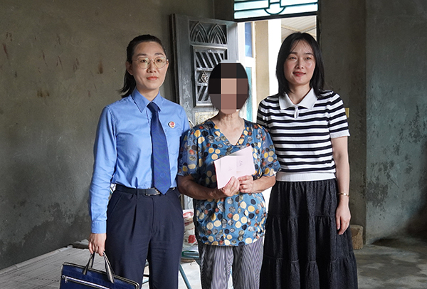 检察官联合妇联工作人员前往因案致贫受害妇女家中发放司法救助金