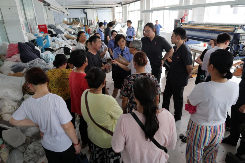 7月31日,在涉事厂房的车间内,法官、检察官、人民调解员围坐一起,经过两个多小时的释法说理与情绪疏导,最终促成各方达成一致,制衣厂负责人对工资承担连带清偿责任,债权人李某与工人们均认可法院提出的资产分配方案。随后,23名工人当场签订分期履行协议,并获司法确认。8月27日,随着最后一笔款项发放,31名工人被拖欠的工资已完成部分发放,剩余未履行部分制衣厂负责人也正依协议如期偿还中。