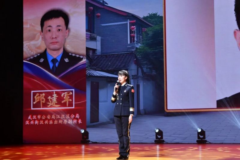 英雄路上薪火相传。报告会最沉重的时刻,属于武汉市公安局江汉区分局汉兴街汉兴派出所原副所长邱建军。2024年,在带队处置一起持刀滋事警情中,为保护群众和战友,他与持刀歹徒展开殊死搏斗,身中15刀仍追凶20多米,经抢救无效壮烈牺牲。从警30年,他参与破获各类刑事案件1800余起零过错零投诉。如今,他倒下的地方成立了“邱建军先锋队”,297名平均年龄29岁的青年民警,正沿着英雄的足迹,将忠诚与勇敢薪火相传。