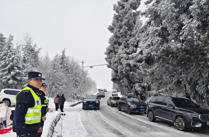 2026年1月1日,元旦佳节清晨,平均海拔1600米的恩施市板桥镇大山顶村气温低至零下,鹅毛大雪仍在持续。板桥派出所副所长张金星和同事牟卫明冒着刺骨寒风,在恩川线路段为过往驾驶员安装防滑链、叮嘱安全事项,口中呼出的白气在低温中瞬间凝结。这是暴雪突袭后,他们坚守岗位的第二天。