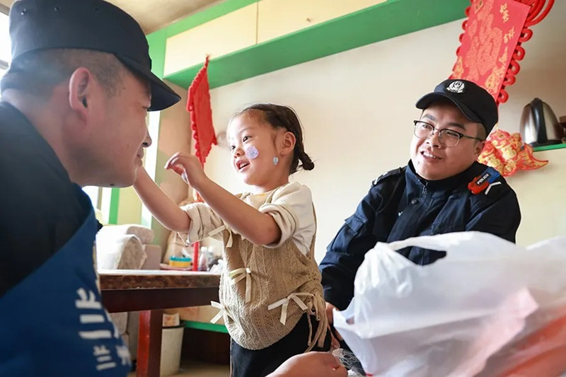 “贴贴”的承诺,民警们记在心里。8月14日,当苏明凯和张云峰执勤路过瑶瑶家门口时,特意停下了脚步。手里攥着给瑶瑶的“惊喜——贴贴纸”“叔叔,那边脸上再给你贴一个!咯咯咯……”在指挥部的帐篷里,孩子银铃般的笑声和民警爽朗的笑声交织在一起,像一束温暖的阳光,穿透了灾后的阴霾。
