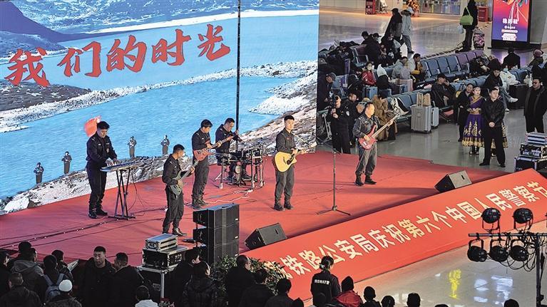 “咔嚓!咔嚓!”冬日的西宁火车站候车大厅里,快门声、惊叹声、欢笑声交织在一起,暖意融融。在第六个中国人民警察节来临之际,青藏铁路公安局西宁公安处邀请100余名嘉宾,与南来北往的旅客一道,在警营开放日的沉浸式体验和文艺汇演的精彩瞬间中,近距离触摸铁警温度,感受平安力量。