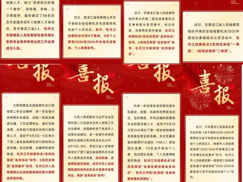 竞赛、调研等多项成果既让集体和个人赢得了荣誉,得到了激励,又反哺了检察实践。2025年,全市检察机关有3篇文章在全国获奖,63篇文章在全省获奖,市检察院获评全省理论研究优秀集体,为精准培训提供了有力的智力支持。收获的荣誉与履职效能的双向提升,为牡丹江检察工作的高质量发展注入了强劲动力。