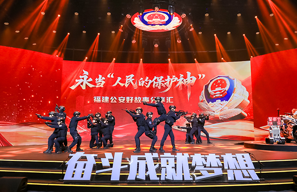 今夜,故事照亮初心;明朝,藏蓝守护安宁。八闽卫士,整装待发。(周敏)