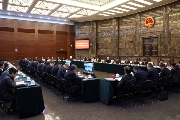 最高法党组副书记、分管日常工作的副院长邓修明,副院长陶凯元,中央纪委国家监委驻最高法纪检监察组组长、最高法党组成员张荣顺,党组成员、副院长杨临萍、茅仲华、沈亮、李勇、王中明,审判委员会专职委员刘贵祥、王淑梅,最高法有关部门、各巡回法庭负责同志参加会商。(记者:白龙飞 | 摄影:孙若丰)