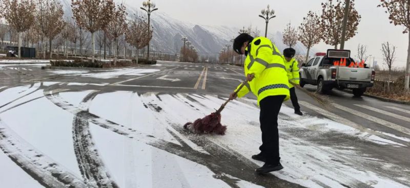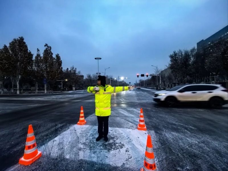 为最大限度降低冰雪对道路交通安全的影响,图木舒克垦区公安局闻雪而动、迅速响应,第一时间启动恶劣天气应急处置预案,全警动员、全员在岗,迅速吹响“战风雪、保畅通、护平安”集结号。警灯划破雪幕,警车穿行街头,一抹抹藏蓝与荧光黄逆风而行,奔赴辖区各主干道、桥梁涵洞、团场连队,用脚步丈量平安,用坚守温暖寒冬。