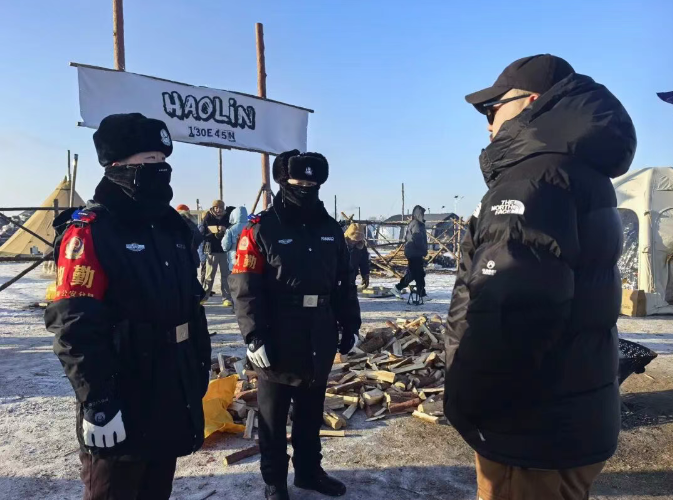 “大爷,你这个线不能这么拉,路过的游客有绊倒的风险。”为做好隐患排查工作,民警在严寒中踩着积雪,深入露营地周边开展安全检查。仔细排查会场沿途及周边冰面,在转弯处、陡坡路段设置警示牌。如发现道路上的障碍物,民警会及时进行清理,确保人员及车辆的安全。在车流密集区域,交管部门做好活动地周边、沿线交通管制工作,确保道路畅通。巡特警部门在活动区及周边道路持续开展不间断巡防,及时处置突发事件。