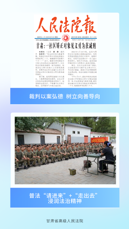 稳定之序,需要价值引领。人民法院的裁判,一端连着法律,一端系着人心。酒泉中院审理的社区矫正对象因见义勇为减刑案,正是这份担当的缩影。法院裁定不仅裁断个案刑期,更裁明了“惩恶扬善、鼓励向善”的司法态度,向全社会传递了司法守护正义底线、珍视向善勇气的清晰信号,为培育尊法尚德的社会风尚注入坚实力量。