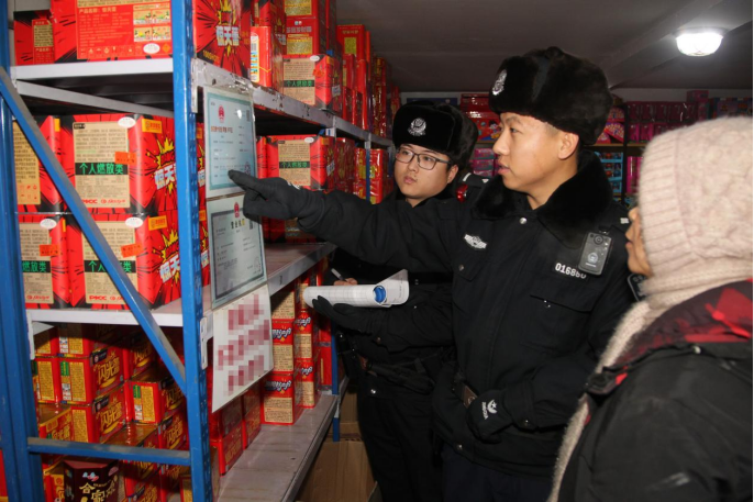 哈尔滨市公安局聚焦烟花爆竹储存、销售、运输等关键环节,开展“全覆盖、无死角”拉网式排查。民警深入辖区零售点、储存仓库、集贸市场等重点场所,仔细核查经营资质、进货渠道、产品合格证明,严查超量储存、违规摆放、混存混放等问题,对消防设施配备、有效期及完好性进行逐项检查。