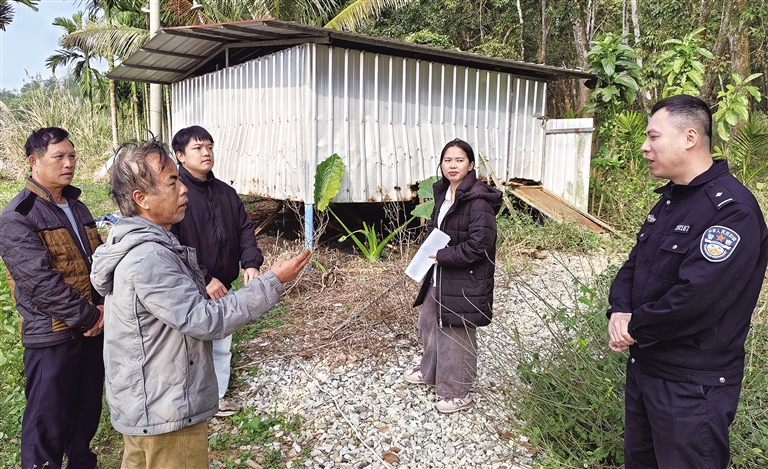 白沙打安镇综治中心联合多部门回访养羊纠纷当事人。记者宋飞杰 摄