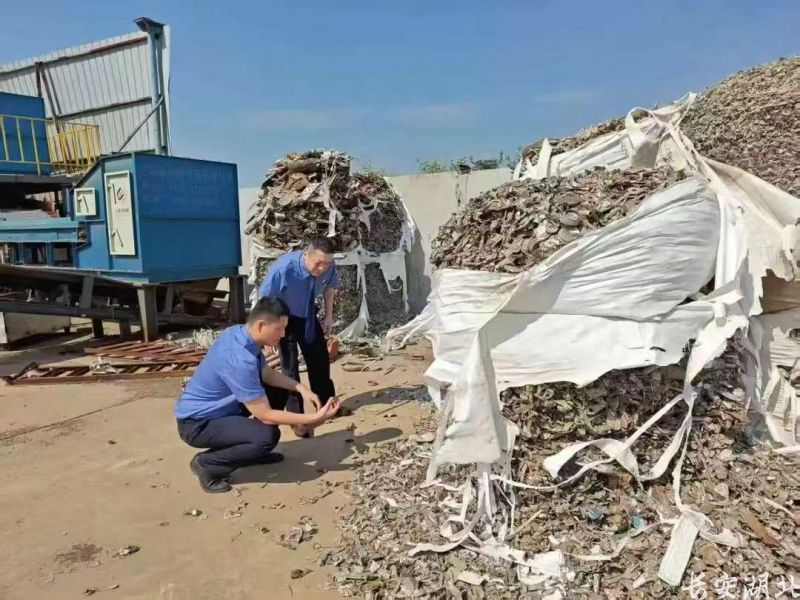 鸭子湖原属长江故道,通过涵闸与长江相通,是石首境内的重要湖泊之一。石首市人民检察院在履职中发现,一家再生资源公司在毗邻长江故道鸭子湖的区域,露天堆放、填埋大量金属塑料碎屑等工业固体废物,生产废水外溢,严重威胁水体与土壤安全。