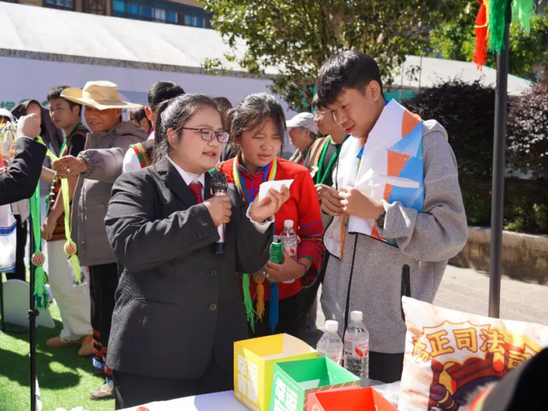 “啦窘啦窘(哈尼语意为‘来吧来吧’),法律知识学起来!”普法摊位前,游客们意“游”未尽。身着美丽的民族服装的干警们用群众听得懂的语言讲解食品安全、消费者权益保护、妇女儿童权益保护等与日常生活息息相关的法律知识,解答法律问题,为群众提供“面对面”送法服务。欢声笑语中,法治意识如糯米香一般,飘进了各族群众心中。