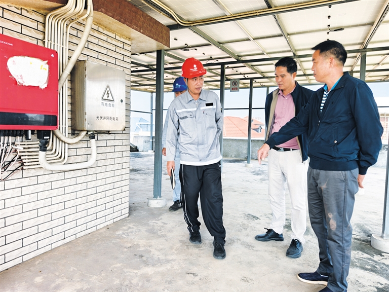 光伏企业相关负责人向八所镇综治中心工作人员介绍情况。高凌 摄