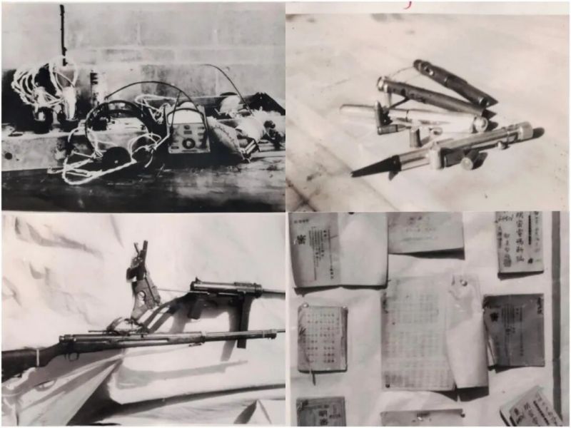 展览会展出的缴获敌特的电台、枪支、工具、密码本