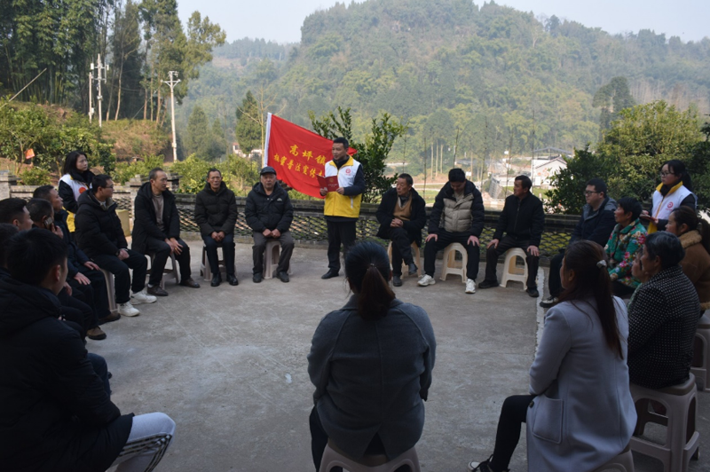 2026年1月15日,高坪镇楠蜜普法宣传队的志愿者给村民宣传森林防火安全。