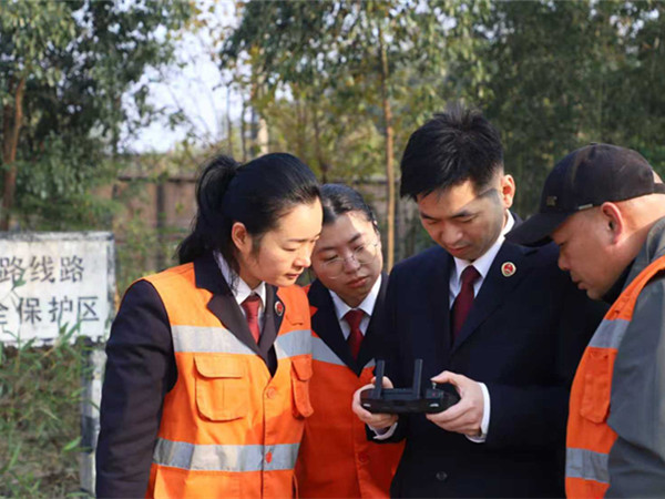 以科技赋能监督,检察官借助无人机,与铁路工作人员一起对铁路沿线整改情况开展“回头看”。