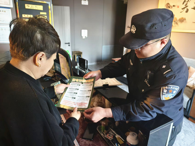 面对电信网络诈骗高发态势,大兴安岭地区行政公署公安局十八站森林分局构建“技术预警、精准劝阻、全域宣传”三位一体防控体系。针对偏远林场采用“实地宣传+微信群”覆盖模式,用通俗易懂的语言讲透诈骗手法,切实筑牢全民反诈的“铜墙铁壁”。同时,民警深入企业、行业场所、居民家中面对面讲解、发放宣传资料,为辖区群众财产安全筑起坚固防线。