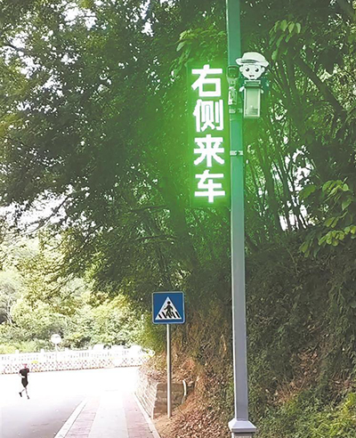 “在科山公园,‘鲲鹏智哨’还能精准探测来车情况,并实时在LED显示屏分别显示‘左侧来车、右侧来车、请注意’等文字,同步启动高音喇叭和红蓝爆闪灯,多维度警示交通参与者注意盲区来车。”陈文强说,该处有一交叉路口因山体遮挡存在很大的视觉盲区。对此,惠安交警曾在此增设交通标志标线,但效果一直不明显。“自‘鲲鹏智哨’投用以后,该路段成为零事故的‘安全示范’路段。”
