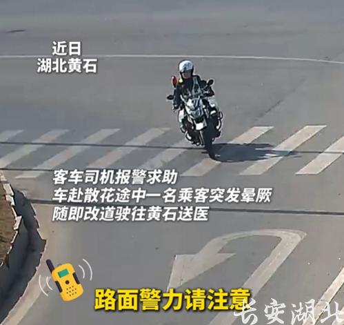 “路面警力请注意!鄂J28783D客车上有乘客昏迷,急需送医!”“收到!”交管支队黄石港大队接到市局110情指中心指令后,迅速联合黄石港区分局花湖派出所警力响应,全程开道护送,将原本需12分钟的车程压缩至6分钟,为患者争取了宝贵的救治时间。
