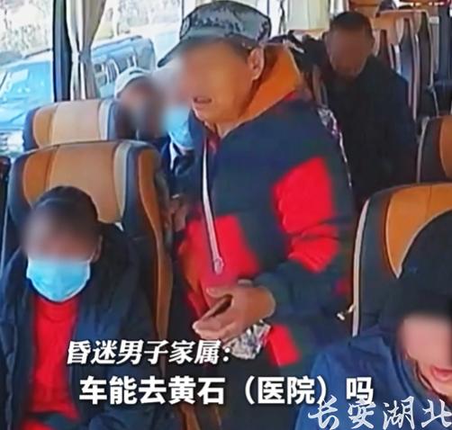 “他昏迷了!车能往黄石开吗?”1月15日12时52分,一辆从浠水开往散花的客车上,一名乘客突然昏迷,家属哭着向客车司机程师傅求助。